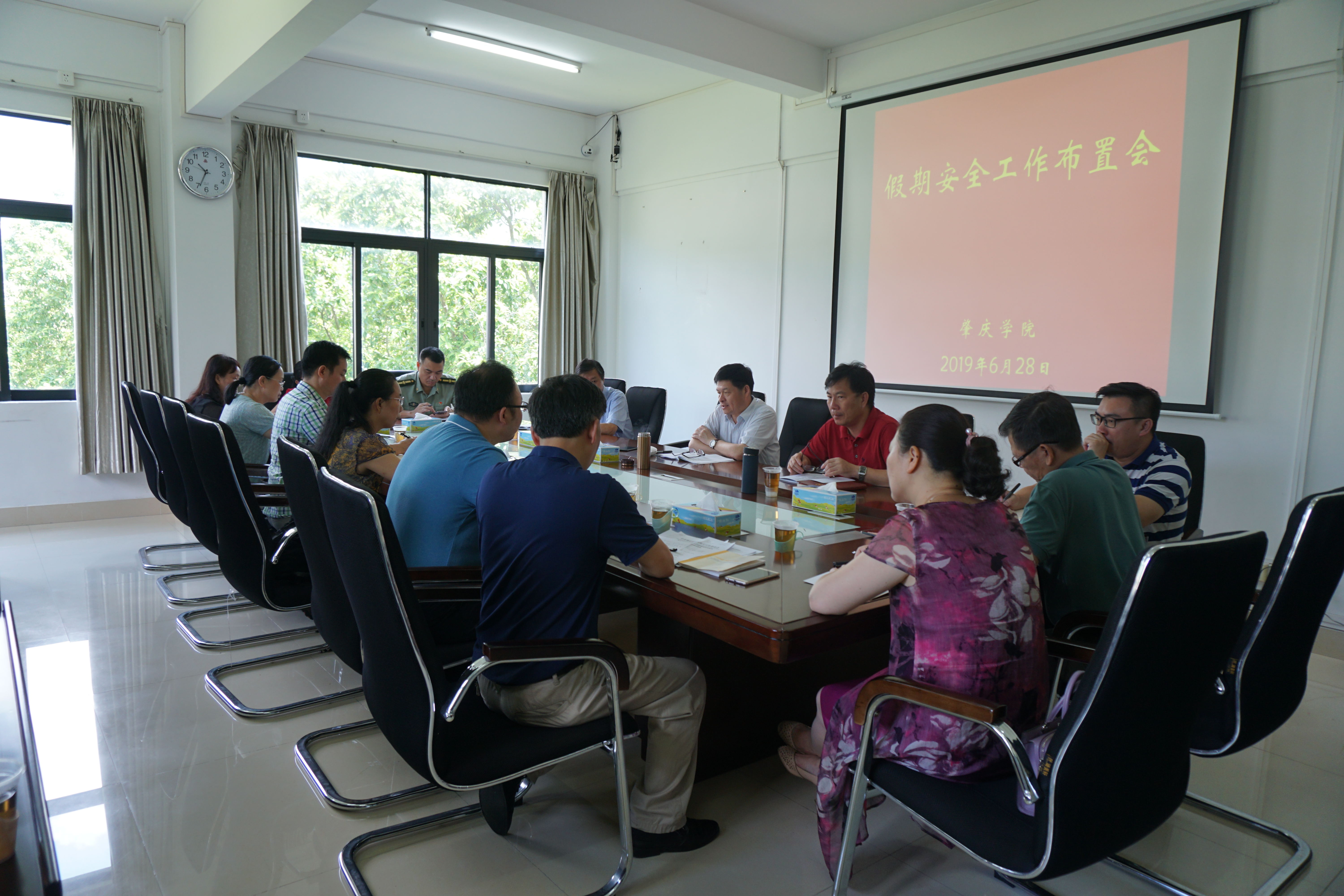 6月28日上午,学校在第四会议室召开期末暑期安全工作布置会议,党委书记曾桓松,党委副书记谢冠华出席,校办、宣传部、人事处、教务处、学工处、保卫处、团委、就业处、后勤处、国际处、信息中心等部门负责人及各二级学院党委副书记参加了会议,会议由曾桓松书记主持。